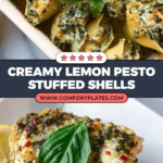 Zucchini Lemon Stuffed Shells with Creamy Pesto Sauce combine tender jumbo pasta shells stuffed with a zesty mixture of ricotta, mozzarella, Parmesan, zucchini, and fresh lemon. Bathed in a luscious creamy basil pesto sauce and baked to bubbly perfection, this dish offers bright, fresh flavors perfect for a comforting vegetarian meal.