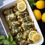 - Prepare Baking Dish: Preheat the oven to 375°F (190°C). Spoon a thin layer of the creamy pesto sauce on the bottom of a baking dish to prevent sticking.